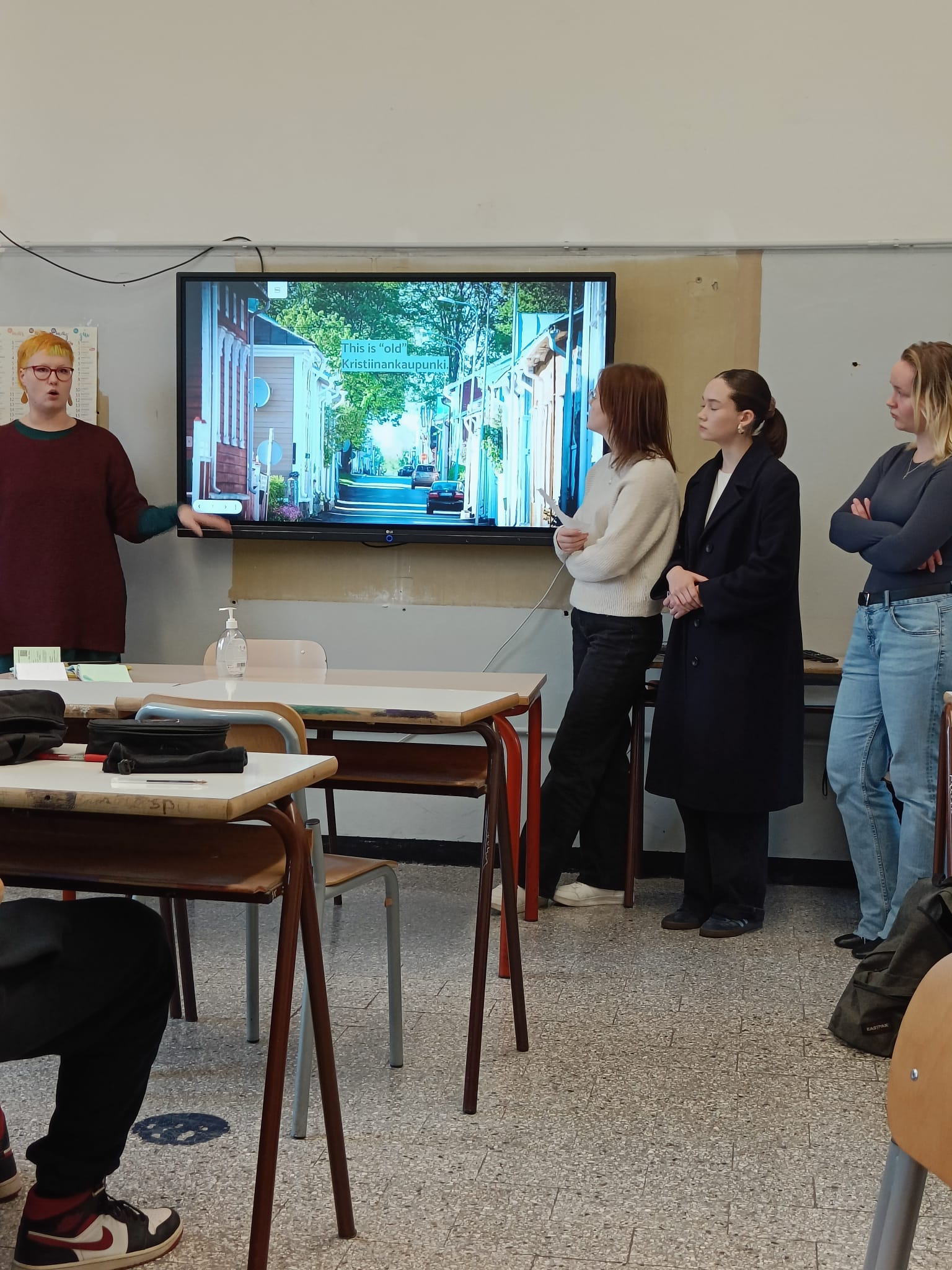 Students had many questions about Finland and we were happy that they found our presentation so interesting. It was a bit stressful to present in front of such a big group of students but we did good working together.