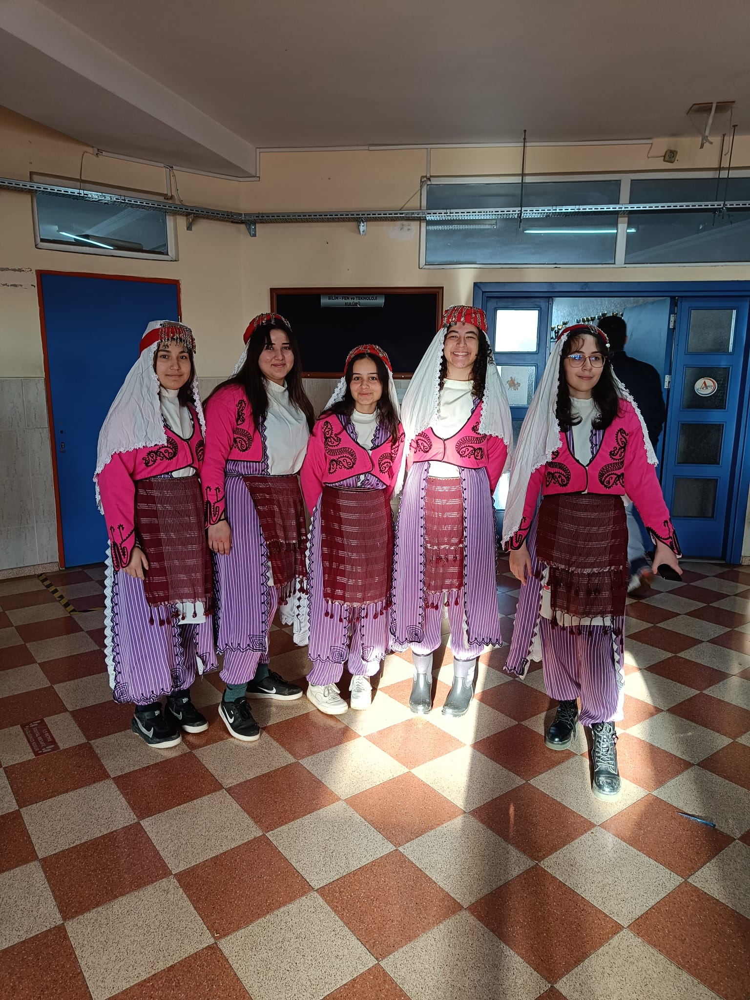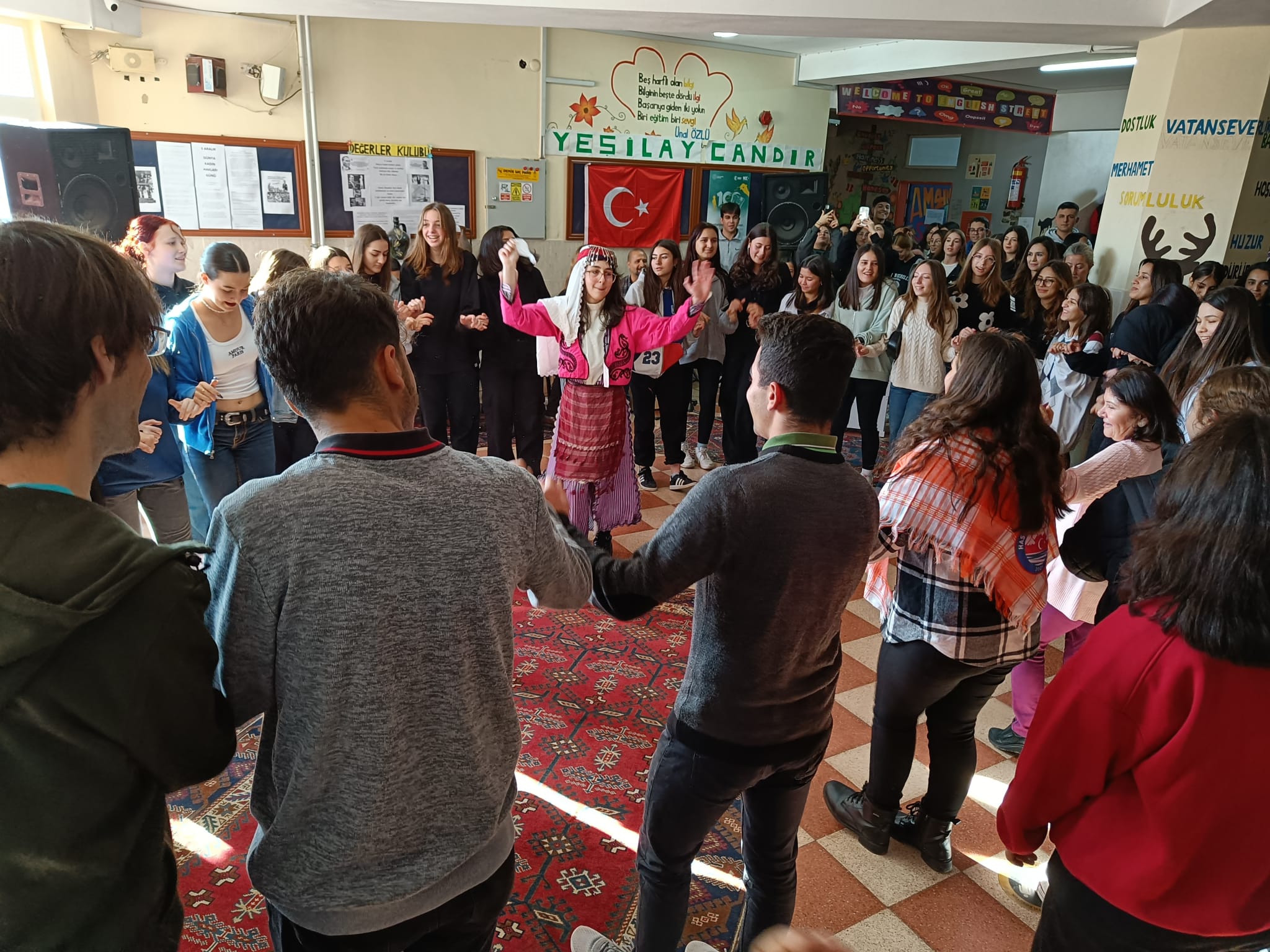 We visited a different school today and received a warm welcome. There was a band playing traditional Turkish music using traditional instruments, we watched and learned traditional folk dances and at the end learned how to make the Turkish carpet. Each symbol at the carpet has a different meaning and so they tell a story when "read" properly. After the welcome we had a moment of artistic improvisation and creativity by expanding a picture of Antalya with our imagination. It was fun and the results were like from a gallery :)