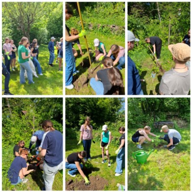 In the morning the students attended some lessons at school. After the break they went to make a weekly video consisting of their pictures taken during the week. The videos were also presented to all the participants in this Erasmus+ -project. After making and watching the videos we all went to the garden where we had previously planted some blackcurrant bushes.