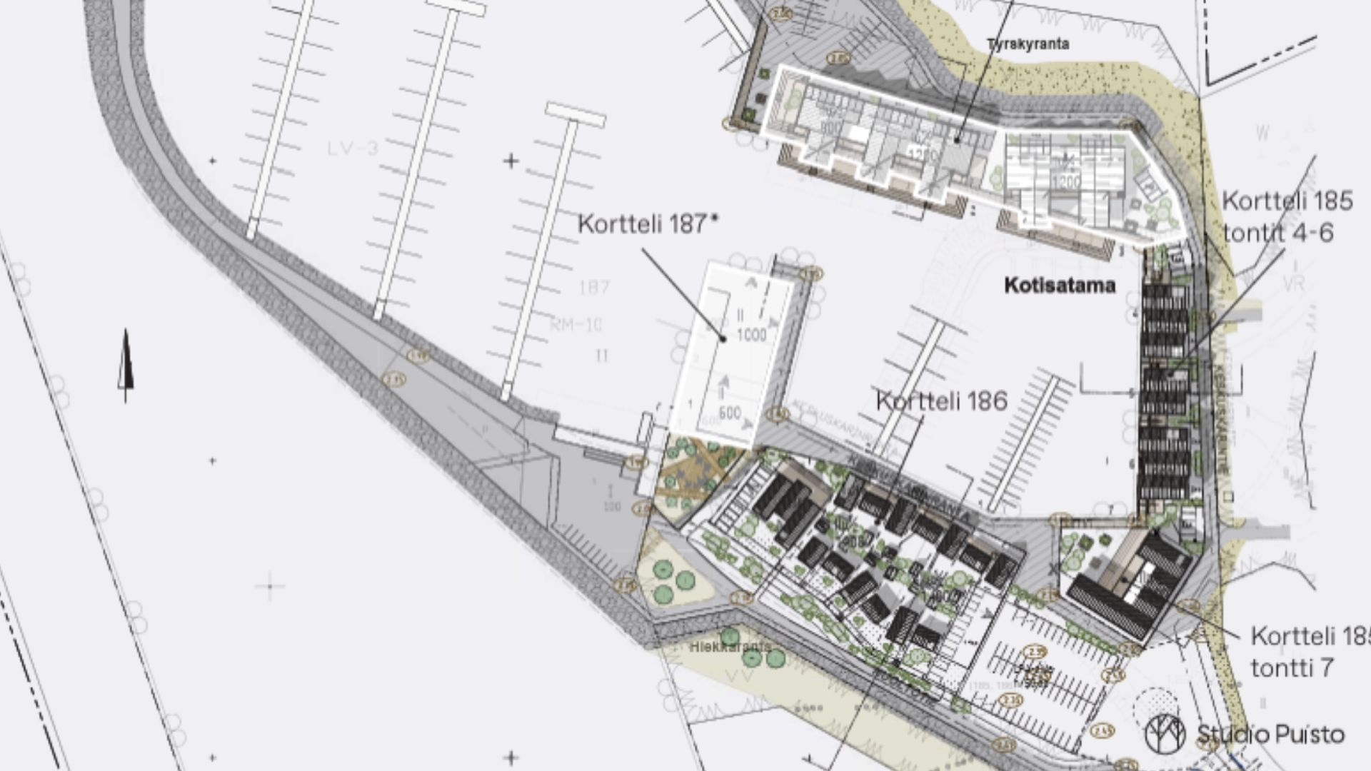 Marinan matkailua palveleva korttelialue 186 on keskeisellä paikalla. Kuva: Studio Puisto