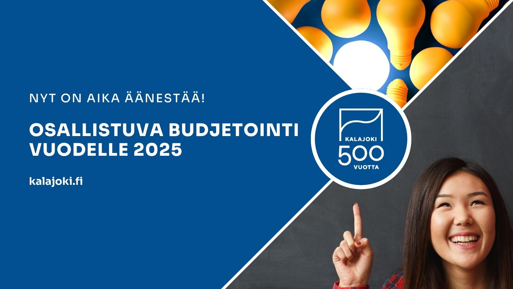 Kalajoen kaupungin osallistuva budjetointi on edennyt äänestykseen, jossa kalajokiset voivat vaikuttaa, mihin asukkaiden ideoista laadittuihin ehdotuksiin kaupunki käyttää 30 000 euroa. Toteutuksessa huomioidaan juhlavuosi.