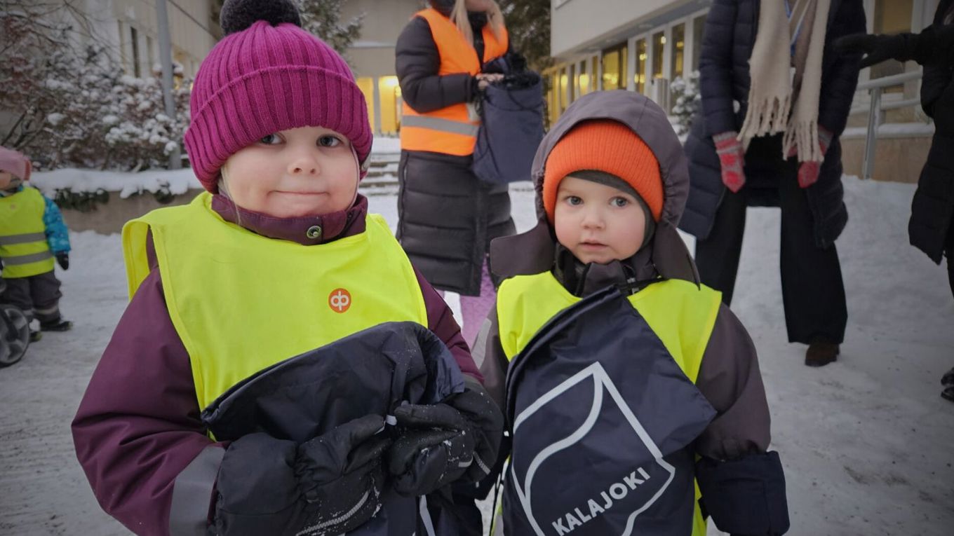 Lapset lauloivat kaikkiaan kolme jouluista laulua ja laululeikkiä. Palkkioksi pienet vieraat saivat Kalajoki-narureput, joissa kulkee näppärästi vaikka uimakamppeet tai jouluiset retkieväät. Omat palkkionsa saivat myös kuvaan päässeet Helli Laakko ja Viljami Tuusa.