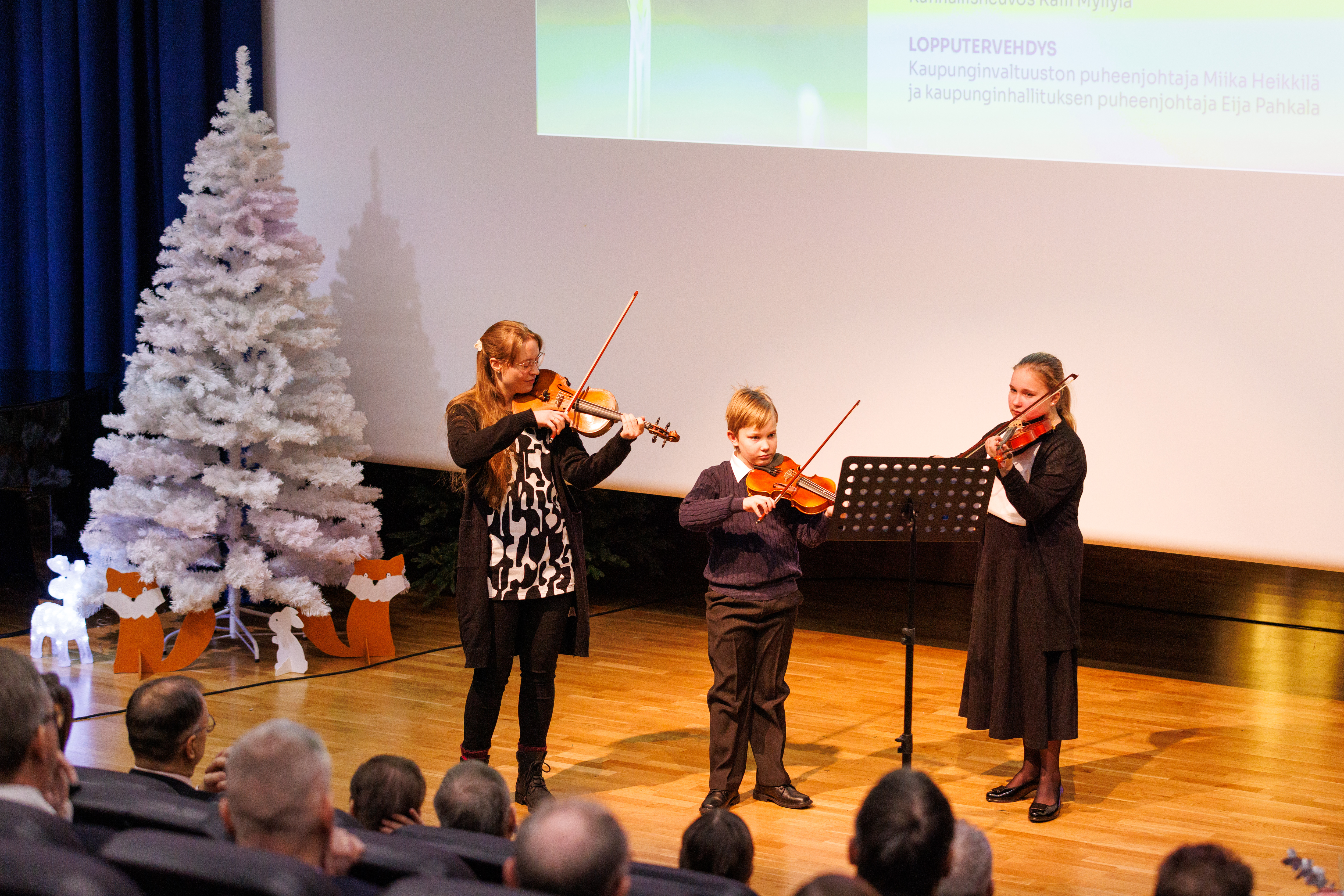 Tilaisuuden musiikkiesityksistä vastasi Kalajoen kansalaisopisto oppilaineen ja opettajineen.