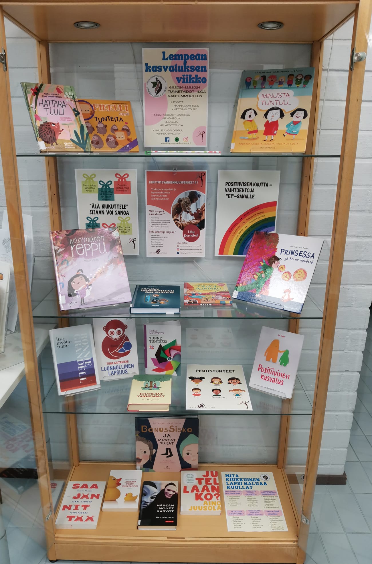 Himangan kirjastossa voi pystyttää näyttelyn vitriiniin tai sermeihin.