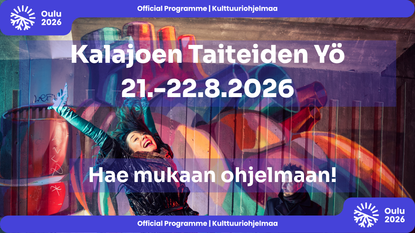 - Kaikki tiedot päivitetään myöhemmin myös tälle tapahtumasivuille (kalajoki.fi/taiteidenyo), ja tiedotusta tehdään myös Oulu2026-kanavissa.