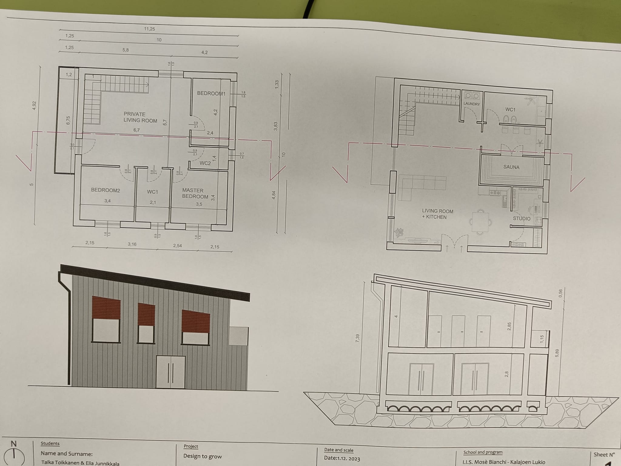 After finishing the design we got to play around with the colors of the house and it was fun to imagine these were our houses and we could paint them any color we want. And finally, the plans were printed out for each of us to keep as a memory and proof of what we have learned. As a result of this project some of us reconsidered their plan to become architects but the majority got even more ensured that this is the profession we want to do also in the future.