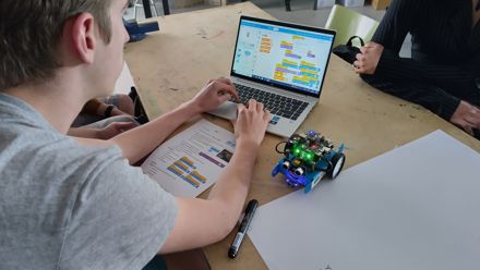 In the robotics class, students were given a small driving robot and access to a programme which could instruct the robot on which way to move. Many students enjoyed being able to press a key and ‘drive’ the robot, like a remote-control car, but the real challenge was to teach it to use its visual sensor to follow a black line on its own. Some students were successful, but others had robots who simply ran around the room on their own. Either way, it was an entertaining and challenging morning for the students.