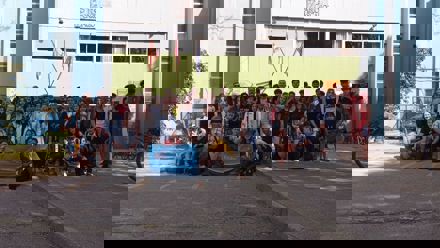 After this, our week was coming to an end, and students were taken to the school playground to build a large dome which would hopefully be used as a display piece for our final group photograph. Whilst the dome was under construction students had the chance to sign post cards for each other with messages of thanks. Then, for the photo, we had to work as a group to lift each section of the dome at the same time to keep its weight evenly distributed. Unfortunately, our knowledge of architecture was clearly still not complete, as once the dome reached around shoulder height, someone moved a little too slowly, and the whole structure collapsed. The group picture still looks good, regardless!