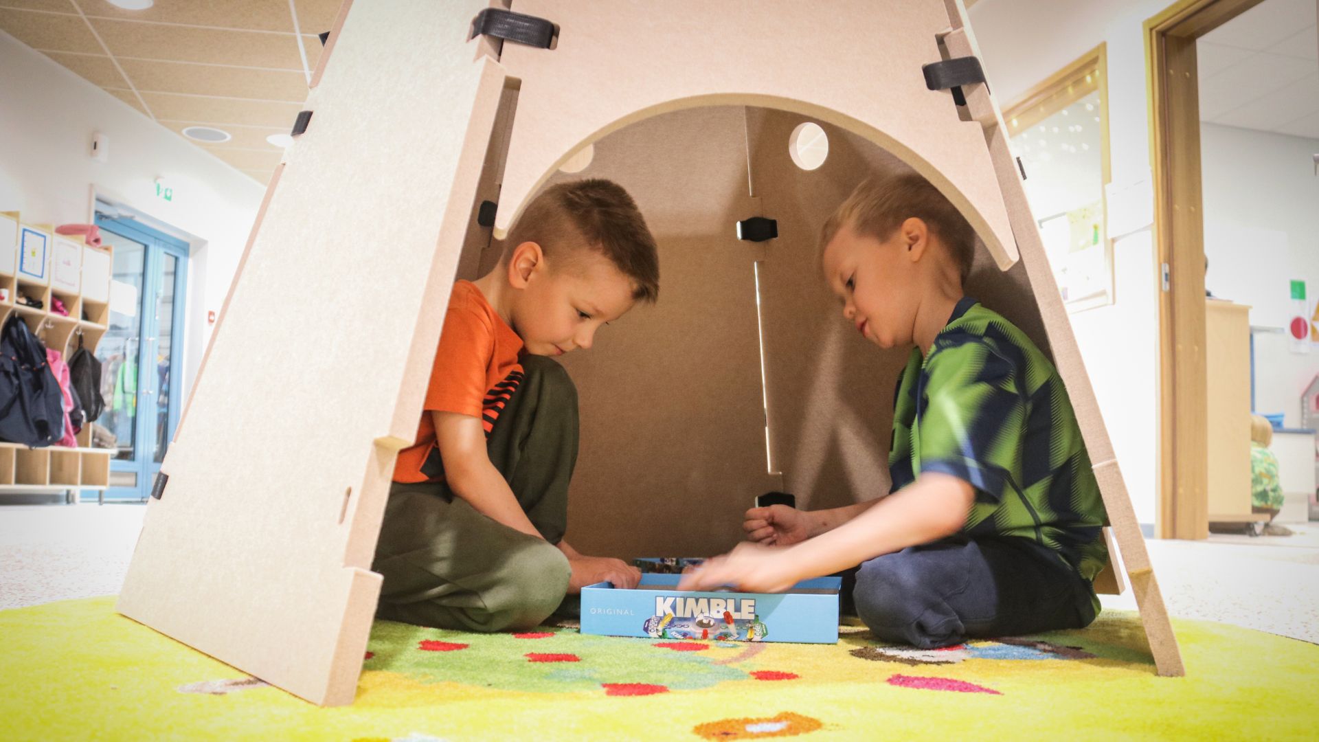 - Me ollaan pelaamassa täällä Kimbleä, Lenni Karhulahti ja Mio Joki-Erkkilä rupattelevat ja lupautuvat kuvattavaksi majassaan ennen kuin eskarilaisten varsinainen päiväohjelma kutsuu jälleen.