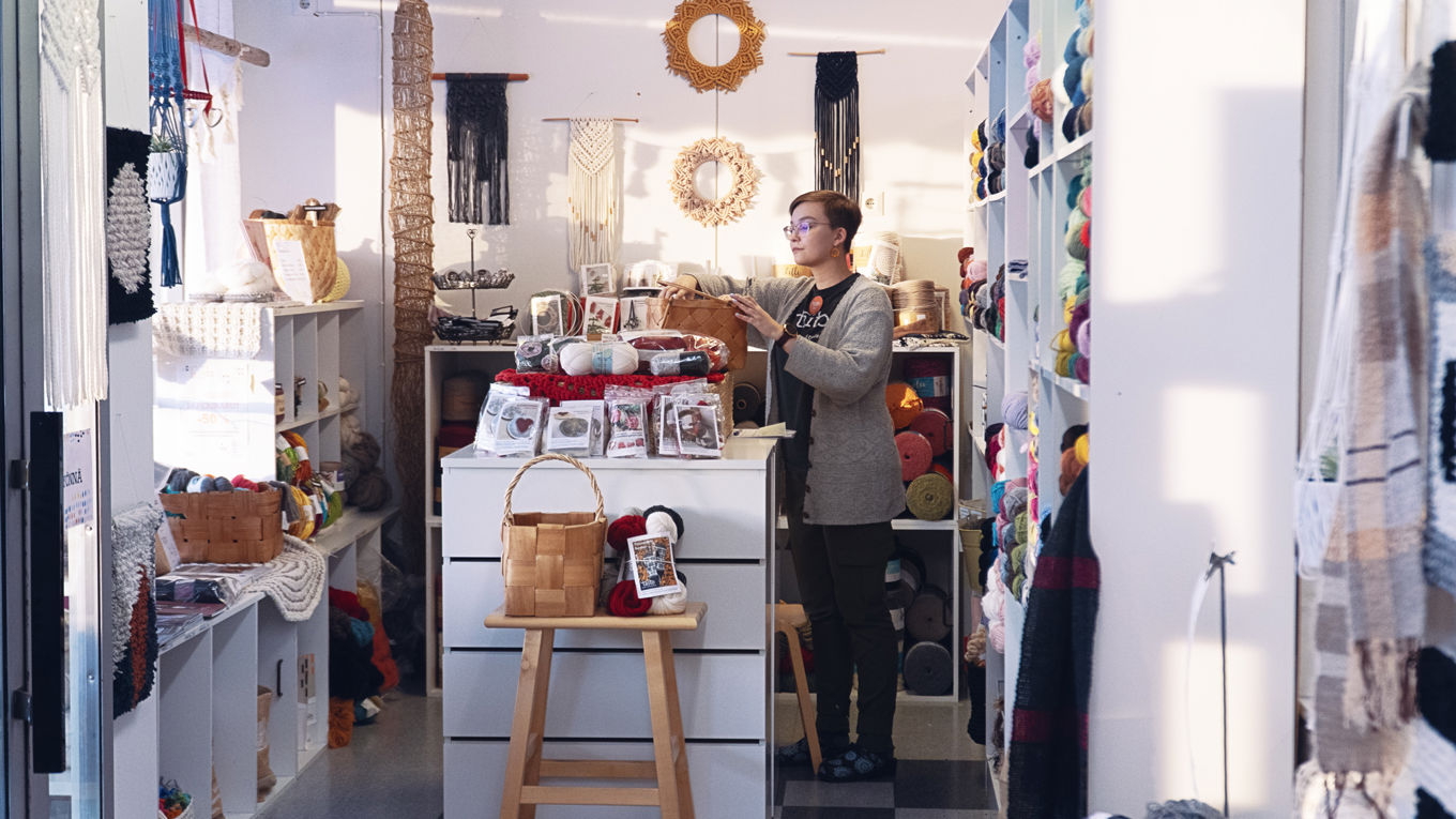 - Työpaikassani on kiva yhteishenki, ja sen lisäksi asiakkaat ovat ihania. Minut on otettu hyvin vastaan ja olen oppinut työssä paljon. Nyt kun olen ollut kaikissa toimipisteissä töissä, tunnen kaikki työntekijät ja minulla on matala kynnys kysyä apua. Ennen kaikki kangaspuun osat olivat ”keppejä”, nyt jo osaan nimet!