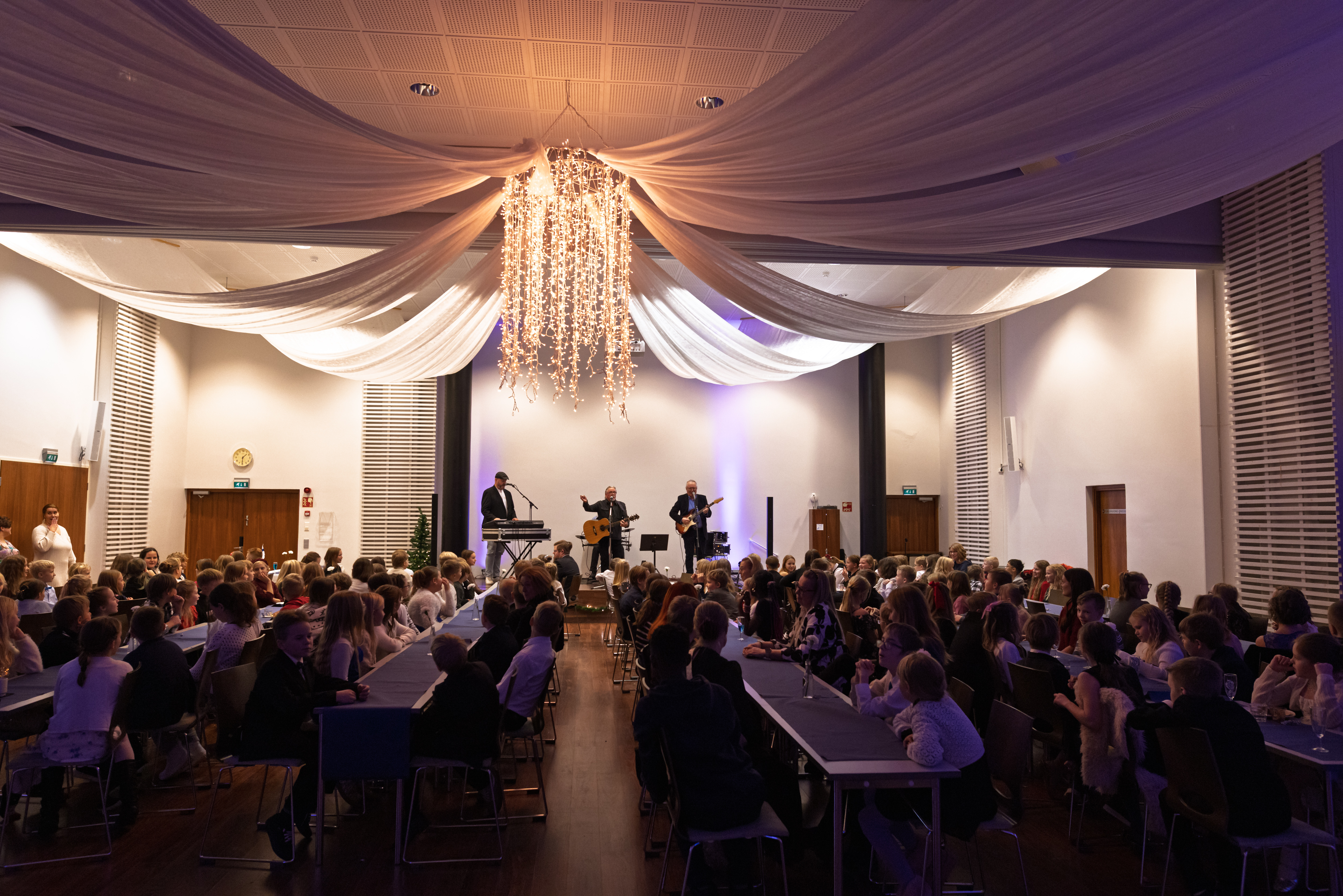 Nelosten itsenäisyyspäiväjuhlan ohjelmassa oli perinteiseen tapaan kaupunginjohtajan avaussanat sekä oppilaiden puhe, joka oli tänä vuonna Raution koulun oppilaiden käsialaa. Puheiden jälkeen saatiin nauttia Säilättärien Suksibaletti -esityksestä sekä coktailpaloista. Juhlan huipensi Koppisten esiintyminen.