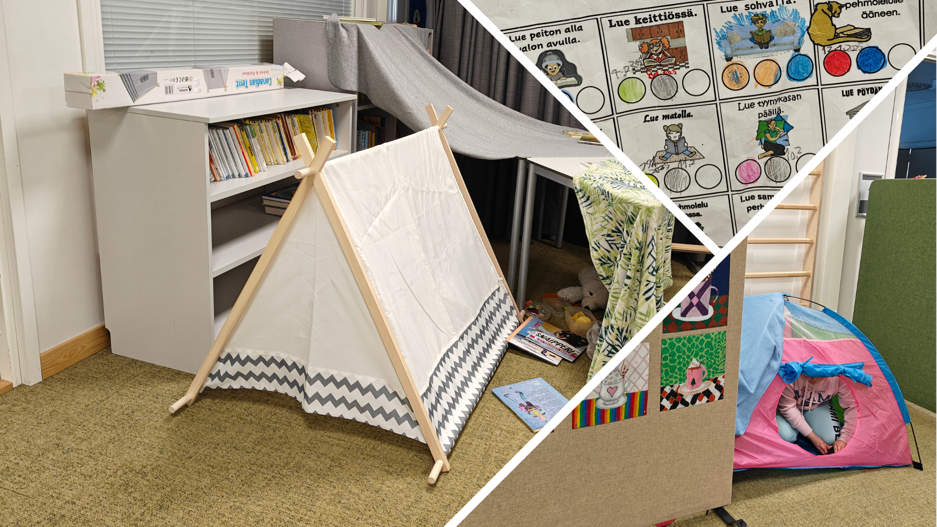 Nyt oppilaiden lukuhaaste on päättynyt ja vuorossa oli palkinto hienosta suorituksesta. Oppilaat rakensivat oman solunsa aulaan tunnelmalliset lukumajat. Majoissa käytettiin hyödyksi koululta löytyviä telttoja, mutta lisätilaa saatiin myös esimerkiksi pöytien ja vilttien avulla. Oppilailla oli lupa ottaa kotoa mukaansa herkkuja ja lukumajoista kuuluikin iloisen rupattelun lisäksi myös herkkupussien rapinaa. Välillä aulan valot himmennettiin ja majoista loisti taskulampun valo oppilaiden lukiessa.