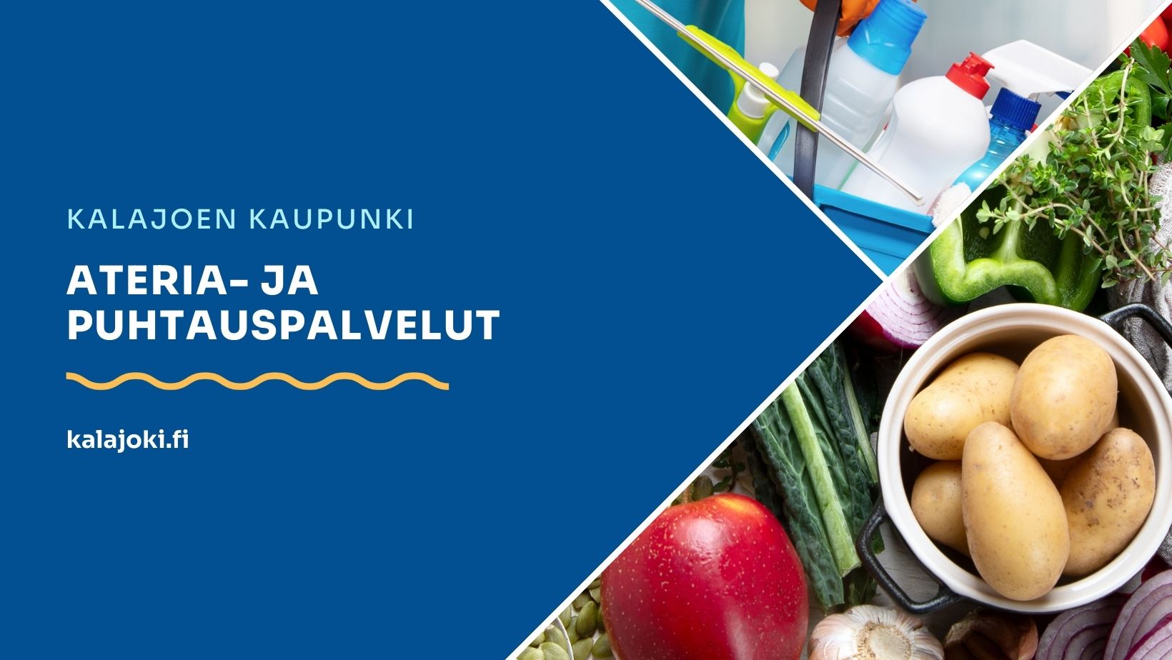 Valmistamme monipuolisia ja ravitsemussuositusten mukaisia aterioita, jotka tukevat lasten hyvinvointia, jaksamista ja oppimista. Ruokahetket ovat tärkeä osa koulupäivää ja päiväkotien arkea, ja panostamme ruokien makuun, laatuun ja paikallisuuteen. - Puhtauspalvelut yhteistyössä kalajokisten palveluntuottajien kanssa kaikkiin kaupungin yksiköihin.