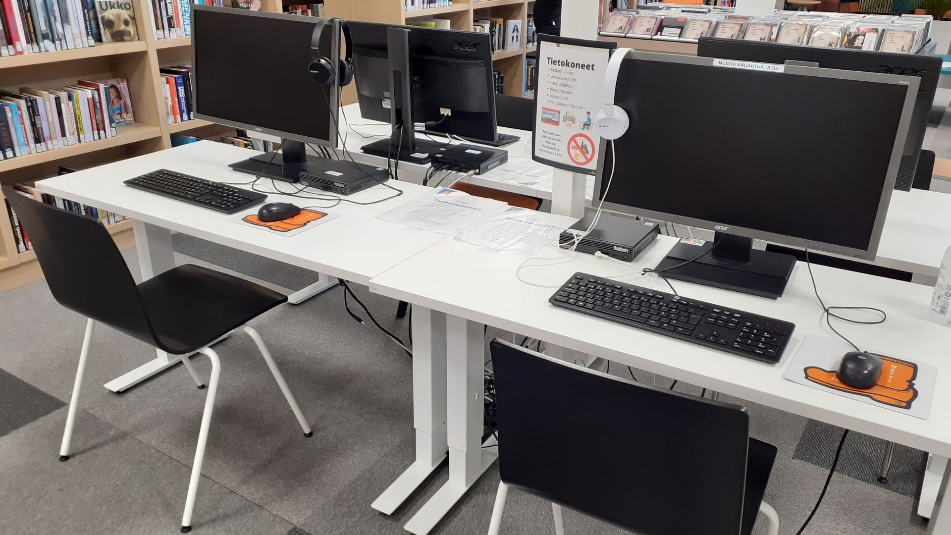 Pääkirjastossa ja Himangan kirjastossa on asiakkaiden käytössä tietokoneita ja tabletteja.