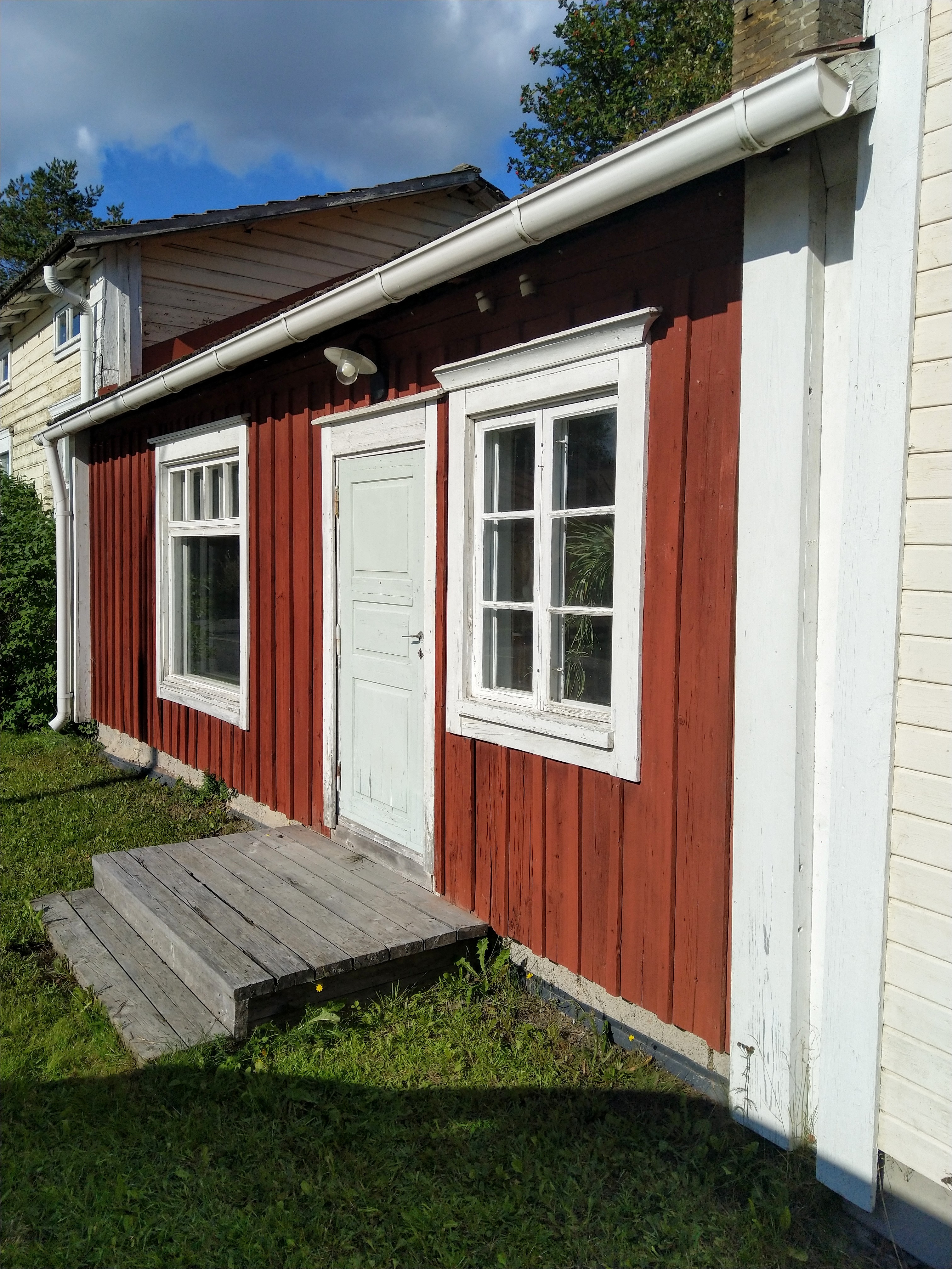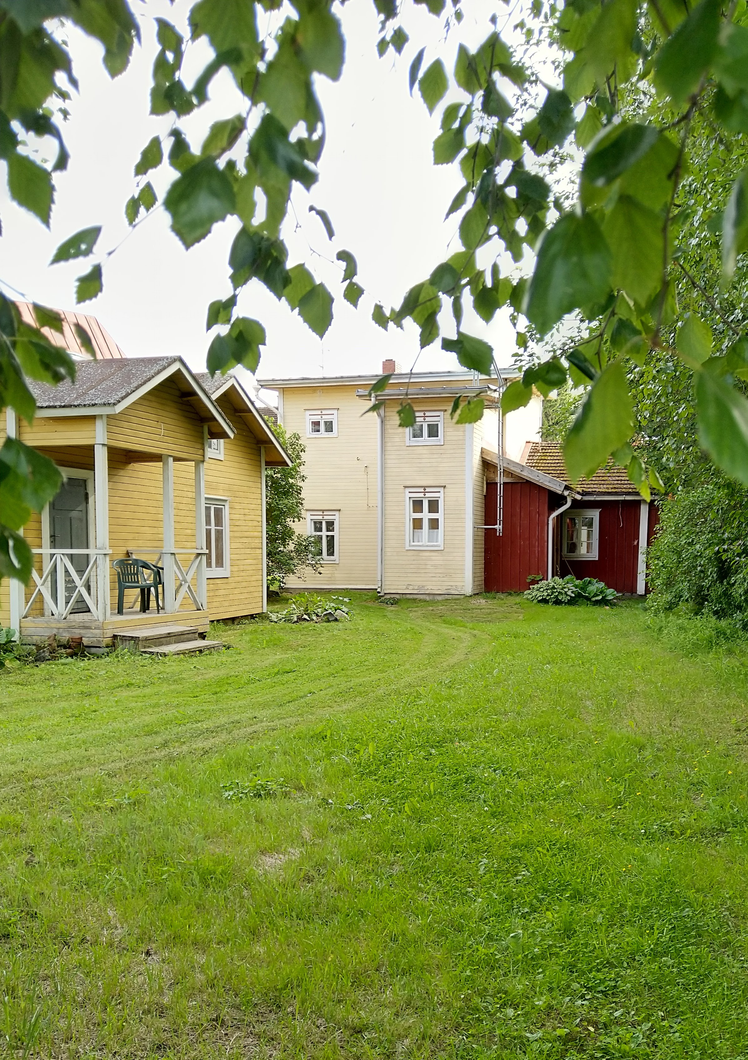 Plassintien varressa pieni punainen puotirakennus ja kaksikerroksinen rakennus. Pihalla entinen leipomo, saunarakennus ja kaksi makasiinirakennusta.